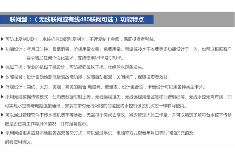 可防止复制UID卡,水控动识别复制卡Q不d制卡金额Q保证投资者利益?br />